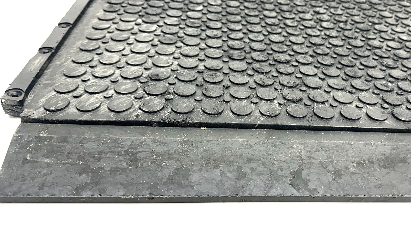 Stejně jako samotné rohože je i nájezd vyroben z pevného PVC recyklátu, který je odolný vůči mechanickému namáhání, chemikáliím i povětrnostním vlivům. Připojuje se pomocí zámkového systému přímo k rohoži a pevně drží na místě bez nutnosti lepení.
