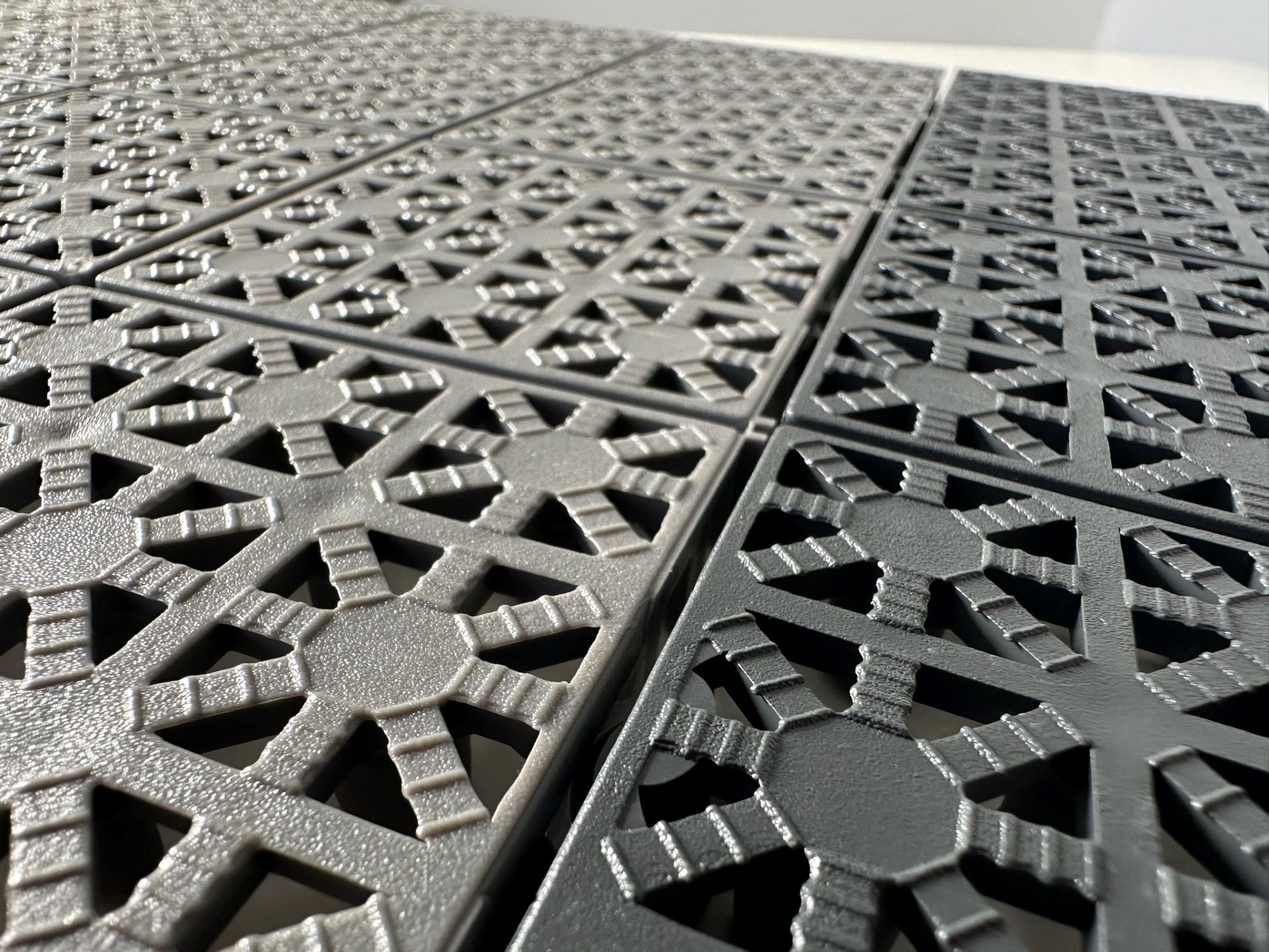 Tento typ dlažby nabízíme pouze v tmavě šedé barvě, protože je vyrobena z recyklovaného plastu.