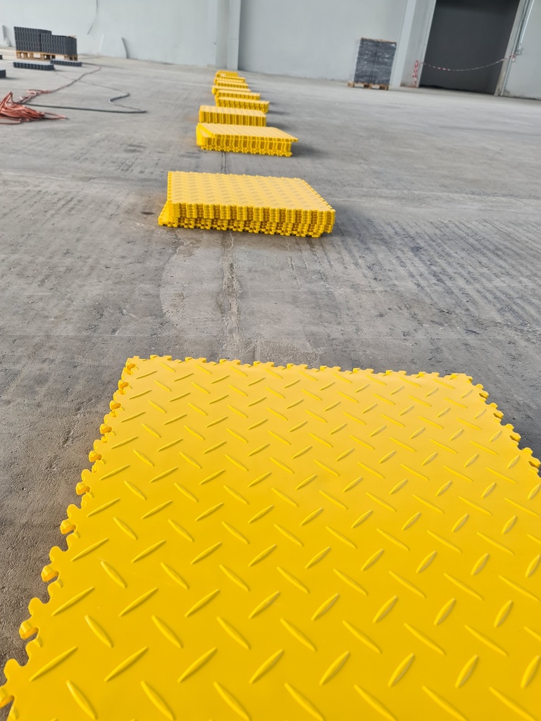Rychlá montáž a údržba: Snadná instalace, čištění a údržba bez nutnosti přerušení provozu. Dlaždice lze jednoduše vyměnit jednotlivě, bez nutnosti demontáže celé podlahy.